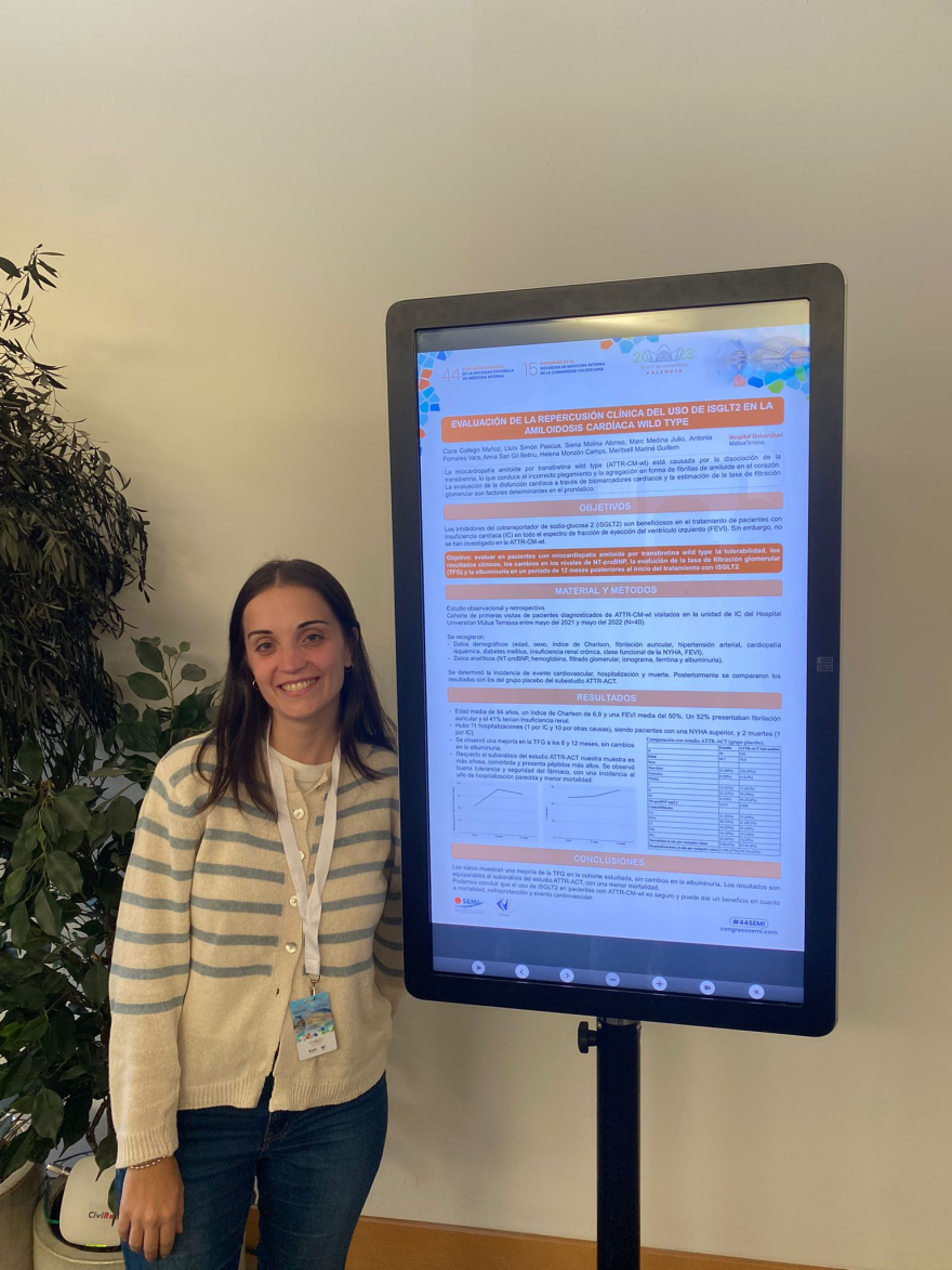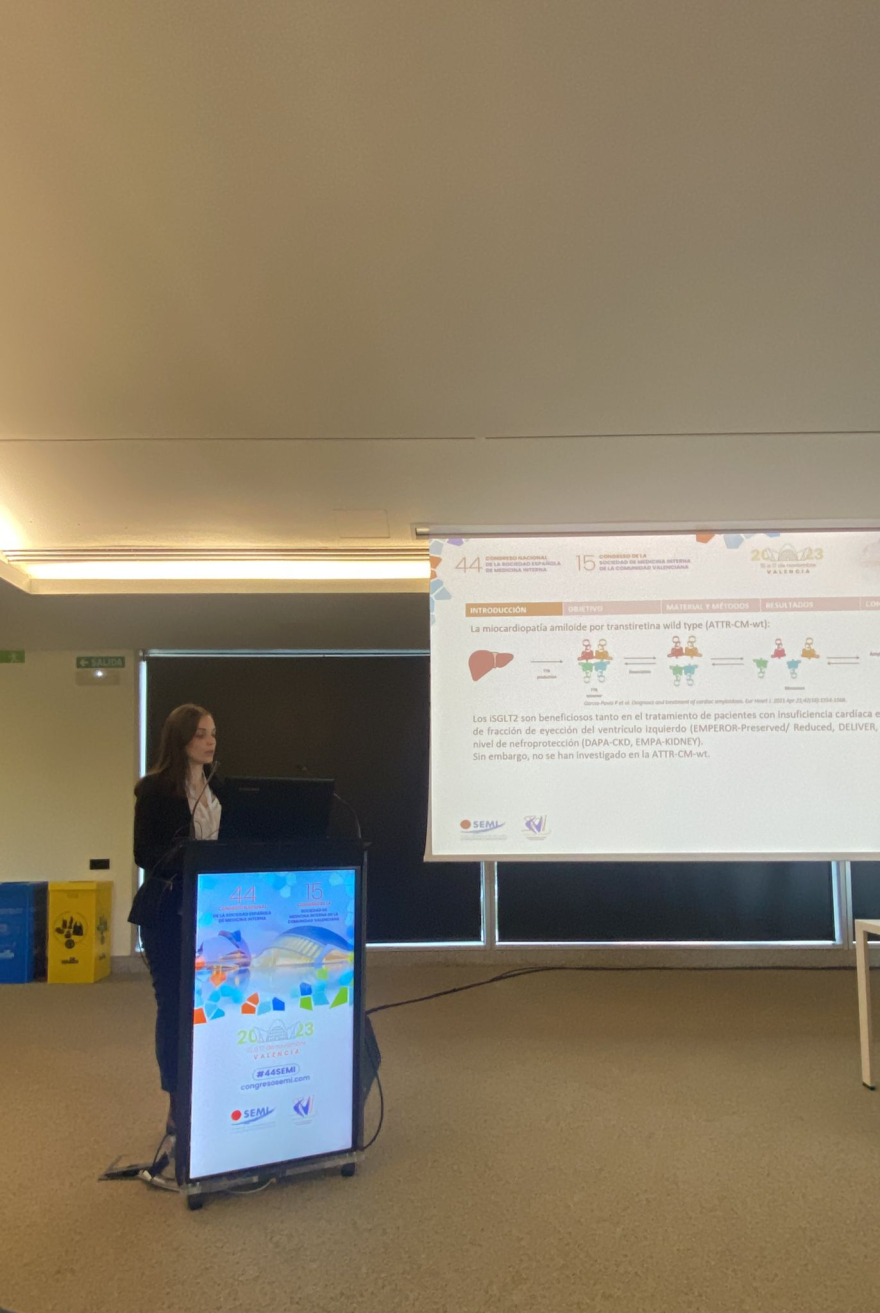 Avaluació de la repercussió clínica de l'ús d'ISGLT2 en l'amiloïdosis cardíaca Wild Type, que va anar a càrrec de la Dra. Clara Gallego que es va presentar en format oral.