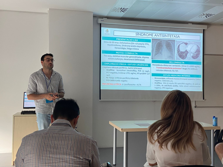 El Dr. Marc Medina va presentar: “Síndrome antisintetasa: Implicació clínica de l'associació entre anticossos Jo-l i Ro-52”