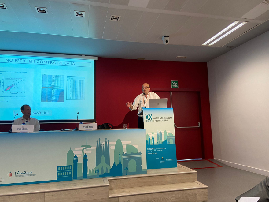 TAULA PRO i CONTRA 3. Pot ser útil la intel·ligència artificial als malalts de medicina interna? Va intervenir el Dr. Pere Almagro, cap clínic del servei, amb la ponència Intel·ligència Artificial per a clínics crítics.