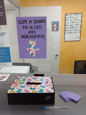 Des del Centre d'Assistència i Seguiment de Drogodependències de la FAMT a Terrassa s’ha organitzat una iniciativa que durarà tot el mes de març, amb l’objectiu de donar visibilitat a les dones que són ateses al CAS i donar-les espai perquè puguin aportar idees al voltant de com les podem acompanyar tenint en compte les seves necessitats. Es tracta que plasmin aquestes idees en un paper i posar-les en una caixa, al final del mes l’equip debatrà aquestes propostes i donaran resposta a les peticions fetes per les usuàries.
