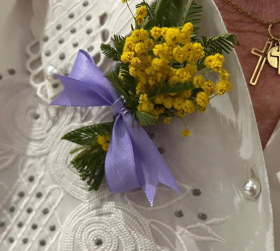 Els residents i professionals de Casa Vapor Gran van realitzar uns pom de mimosa amb un llaç lila. La tradició de regalar un pom de mimosa pel dia de la dona, té el seu origen en Itàlia, on aquesta flor simbolitza els drets de la dona.