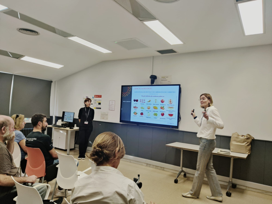 A banda del servei d’Endocrinologia i Nutrició, representat per les infermeres educadores en diabetis Silvia Rodríguez, Belén Berrocal i Núria Alonso, també hi van prendre part els professionals incorporats recentment als Centres d’Atenció Primària, Susana Canovas i Marta Planas, Dietistes-nutricionistes. La sessió de tarda va finalitzar amb un taller pràctic sobre la realització de menús saludables.
