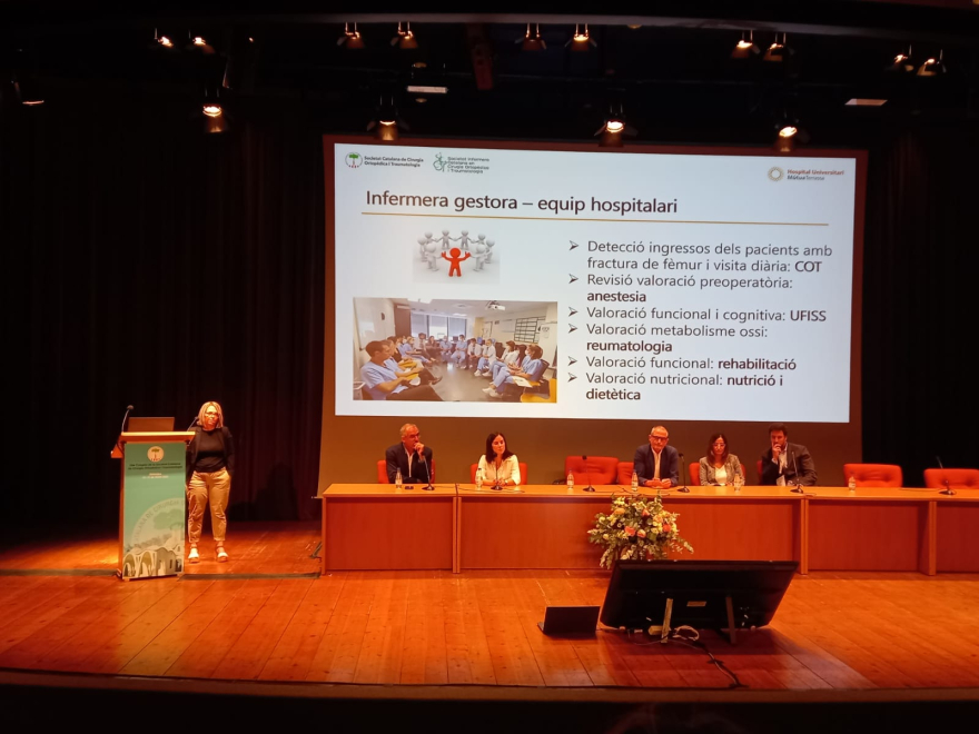 Olga Monistrol, infermera de seguretat dels pacients i recerca de l’Àrea de Projectes Assistencials d’Infermeria de l’HUMT, va moderar una taula sobre qualitat i seguretat dels pacients sobre prevenció de les infeccions en COT. En aquesta hi va intervenir Carol Porta, infermera de prevenció i control d’infecció de l’HUMT.