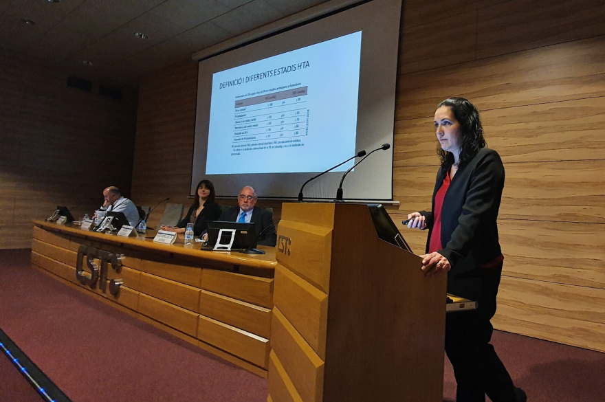 La segunda mesa, Hipertensión Arterial y riesgo cardiovascular, estuvo moderada por el Dr. Alejandro de la Sierra, jefe del Servicio de Medicina Interna de nuestro hospital y el Dr. Antonio Sánchez, jefe del servicio de Cardiología del CST. La Dra. Lidia González, médico de Atención Primaria del CAP Rambla, intervino en esta tabla con la comunicación: ¿Qué dicen las nuevas guías europeas para el manejo de la HTA? (La historia interminable).